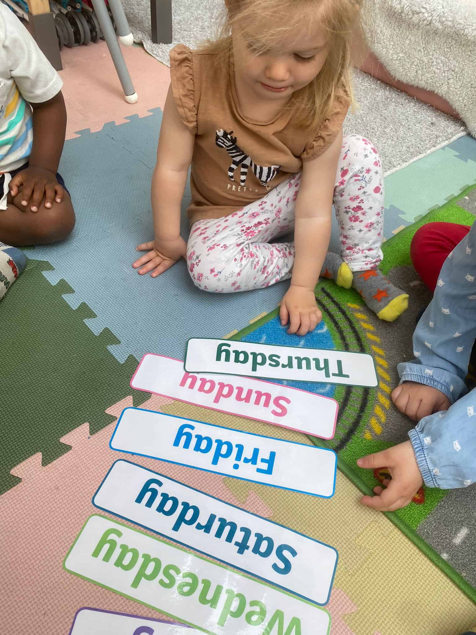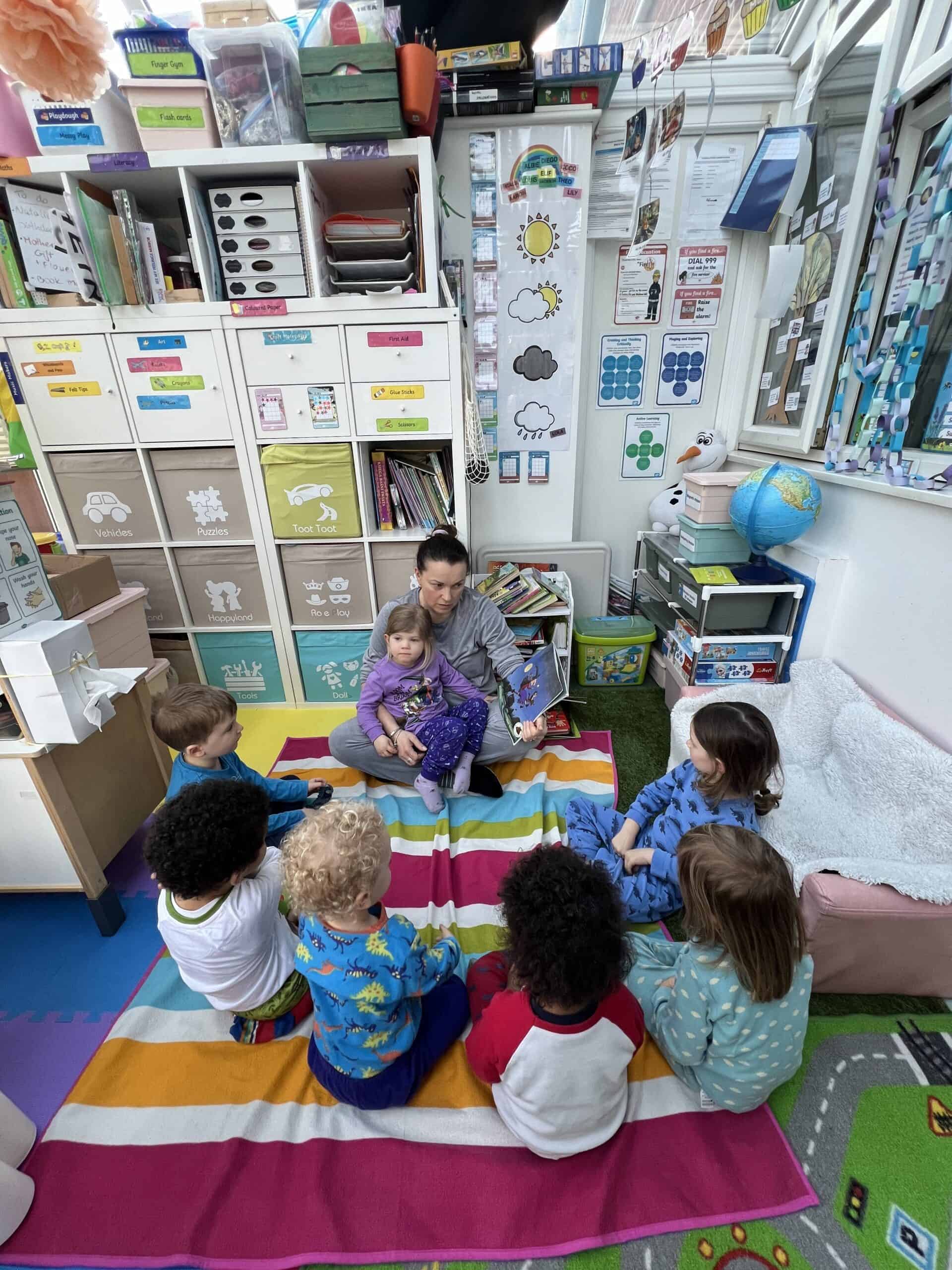 Carpet time is an adult led learning time when children get to know numbers, shapes, colours, letters and sounds, days of the week, months of the year as well as nursery rhymes and songs.